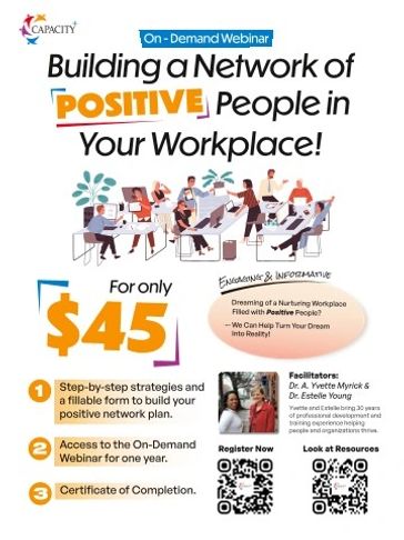 Dreaming of a nurturing workplace filled with positive people? This training offers strategies to make your dreams come true. Drawing on our decades of experience and the expertise of others, we offer time-tested tips that everyone can master. Our tips are effective, simple to implement, and low or no cost.