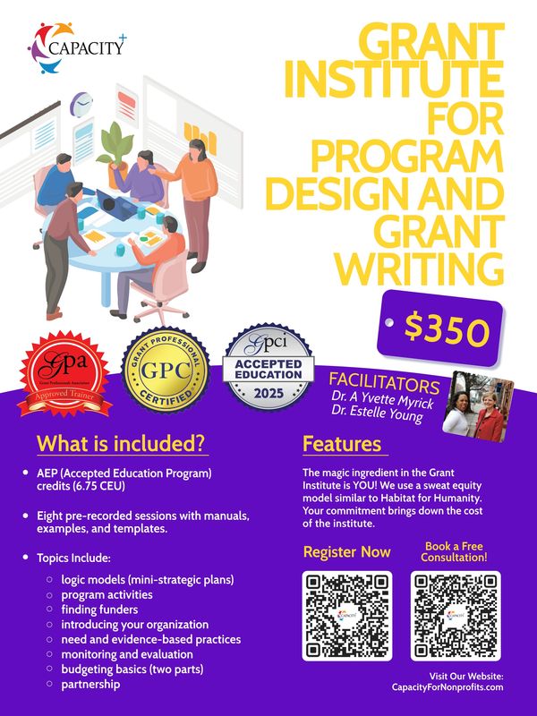 The Grant Institute is a great way to learn for yourself how to write successful grant applications, find funders, keep your nonprofit organized for proposals, plus much more!